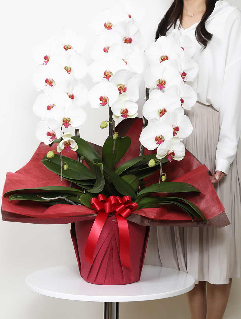 胡蝶蘭 3本立ち 30輪以上保証(蕾含む) 白赤