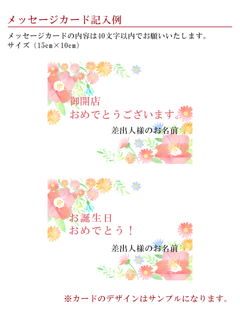 • ●メッセージカード・立て札無料(木札は別途有料)