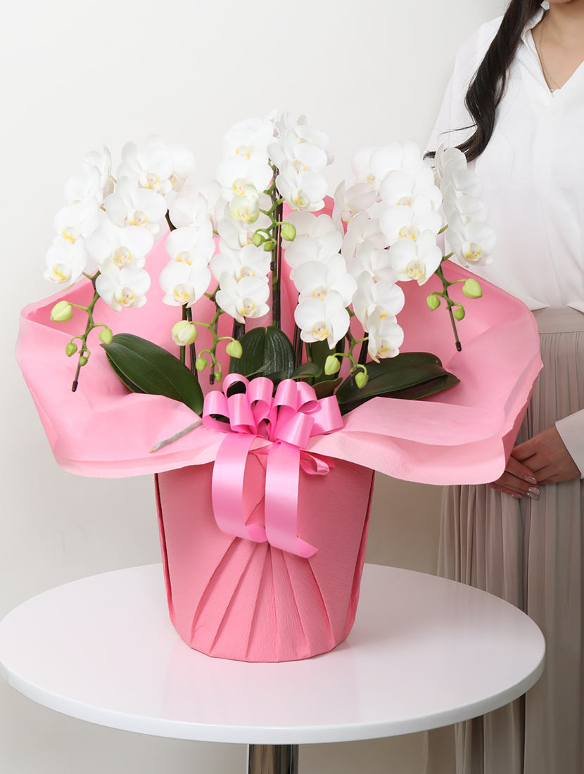 優雅で気品のある胡蝶蘭の雰囲気そのままに、場所を選ばず楽しめるコンパクトなサイズです。